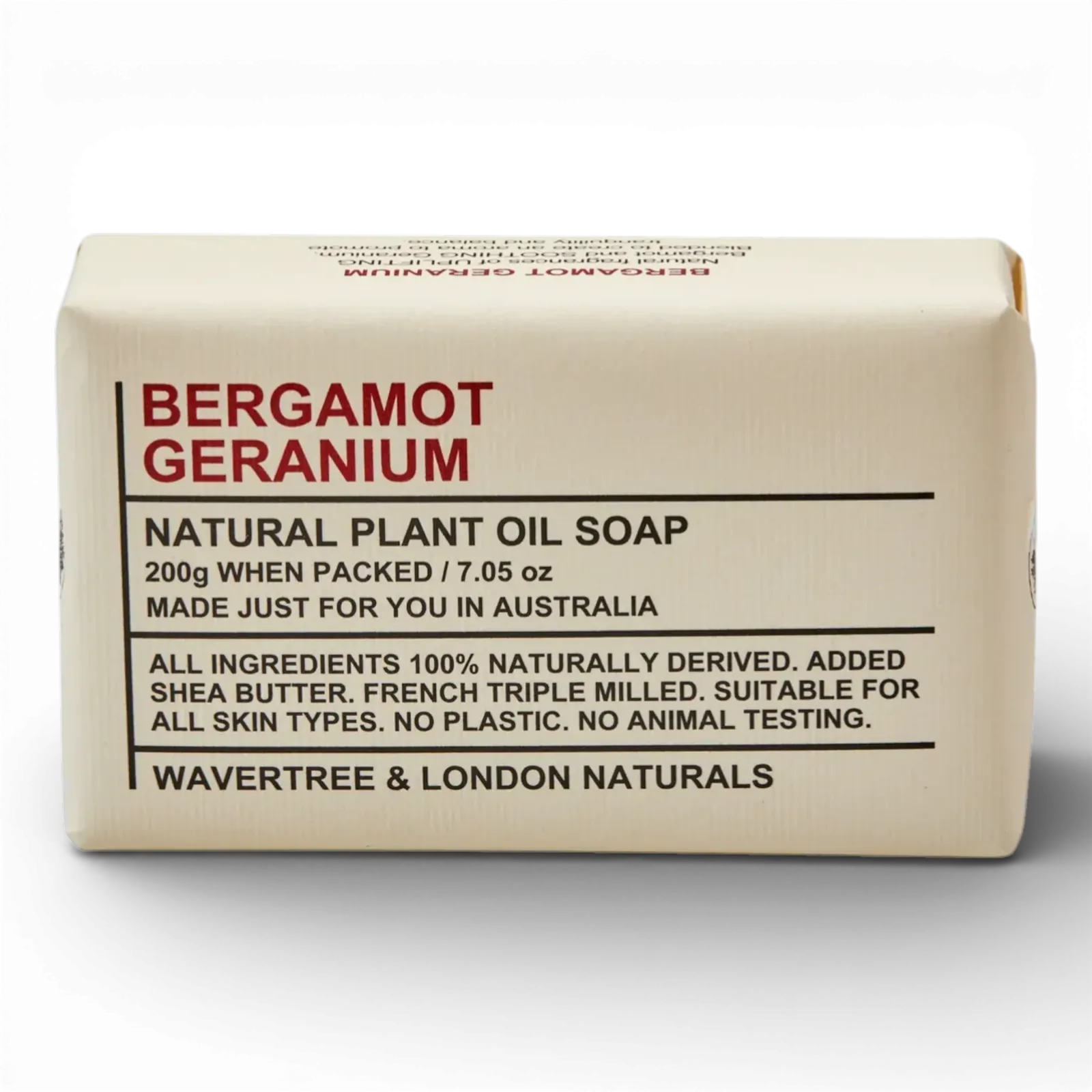 Wavertree & London soap bars are produced in Australia by dedicated artisan soap makers using the traditional French Triple Milling process. Enriched with pure Organic Shea Butter, these bars will leave your skin soft and moisturized.