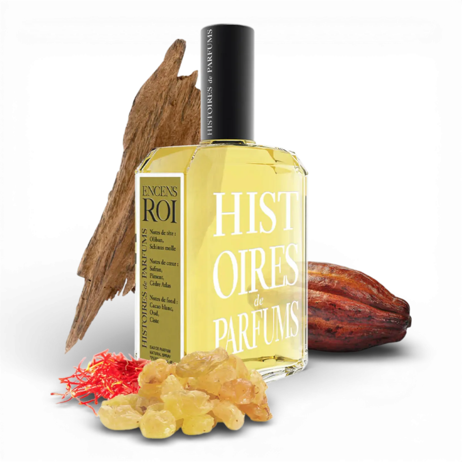Olibanum and Saffron, the divine and the profane, the Abrahamic and the Babylonian, each enriching their song, one with the mystical, ecstatic, mystagogic darkness of Oud and the balsamic warmth of Cistus; the other with decadent and overdosed accents of White Cacao and Vanilla, regressive, impious and gourmand. Interlaced billows of sweet and cold smokes; a path of pleasure and a path of enlightenment; the resin of gods and of princes: Encens Roi collects the tales of a Humanity that has never ceased to hope.