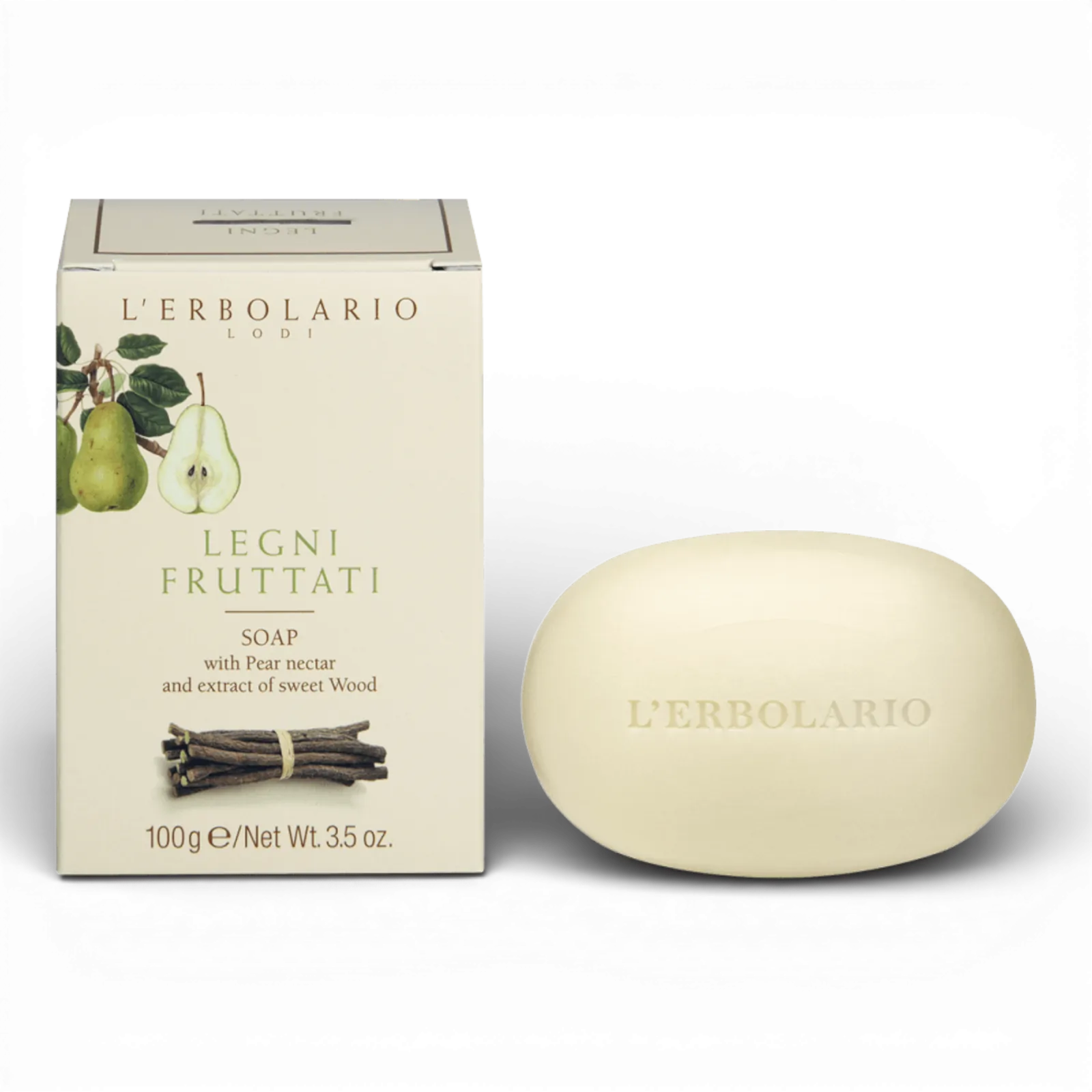 The entire formulation of Legni Fruttati soap is modulated in the light of the combination of Pear Nectar, endowed with vitamins, and Liquorice, contained in the form of its softening and refreshing extract, the ideal complement for daily ablutions and suitable for every type of skin, including the most delicate and prone to reddening.